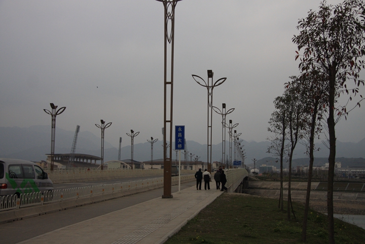 工程規(guī)模:永昌橋位于北川新縣城南端,連接齊魯大道和安北公路,是進(jìn)入新縣城的門戶,也是新縣城對(duì)外交通的主要通道,代表著新縣城的形象和未來(lái)。永昌橋結(jié)構(gòu)型式采用變截面連續(xù)梁方案,橋梁全長(zhǎng)550米,其中橋梁主體長(zhǎng)230米,寬34米,斜15°。主梁跨徑組合為32.5+3x55+32.5米,箱梁分兩幅,斷面為單箱三室,跨中梁高1.9米,橋墩處梁高3.5米,懸臂2.5米。