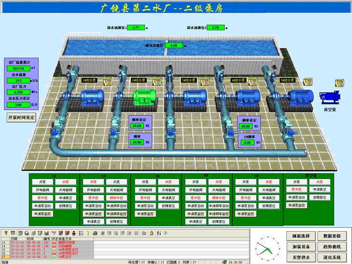 工程規(guī)模:設(shè)計(jì)規(guī)模3.5萬(wàn)噸/日,新建水源井10座,改建原一廠水源井9座,均采用在線遠(yuǎn)程監(jiān)測(cè)、控制。水廠采用地下水-清水池-消毒-二級(jí)泵房的處理工藝。綜合運(yùn)用GIS技術(shù)、CAD技術(shù)、數(shù)據(jù)庫(kù)技術(shù)、網(wǎng)絡(luò)技術(shù)、管網(wǎng)綜合調(diào)度系統(tǒng)(SCADA),建設(shè)了廣饒縣GIS給水管網(wǎng)地理信息系統(tǒng),實(shí)現(xiàn)城市給水管網(wǎng)數(shù)字化全覆蓋,實(shí)現(xiàn)了城市給水全生產(chǎn)過(guò)程的信息化管理。