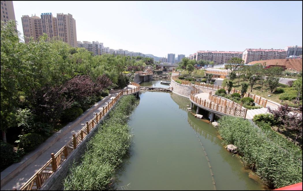 洪山大溝位于濟(jì)南城區(qū)東部,河道全長(zhǎng)1900米,面積約7.1公頃,總投資5000萬元。